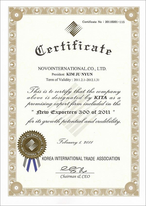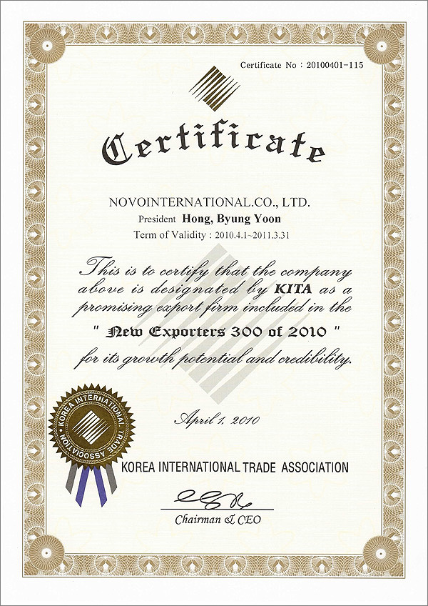 Избрание Корейской торговой ассоциацией в качестве предприятия, входящего в список Новых экспортеров 300 |