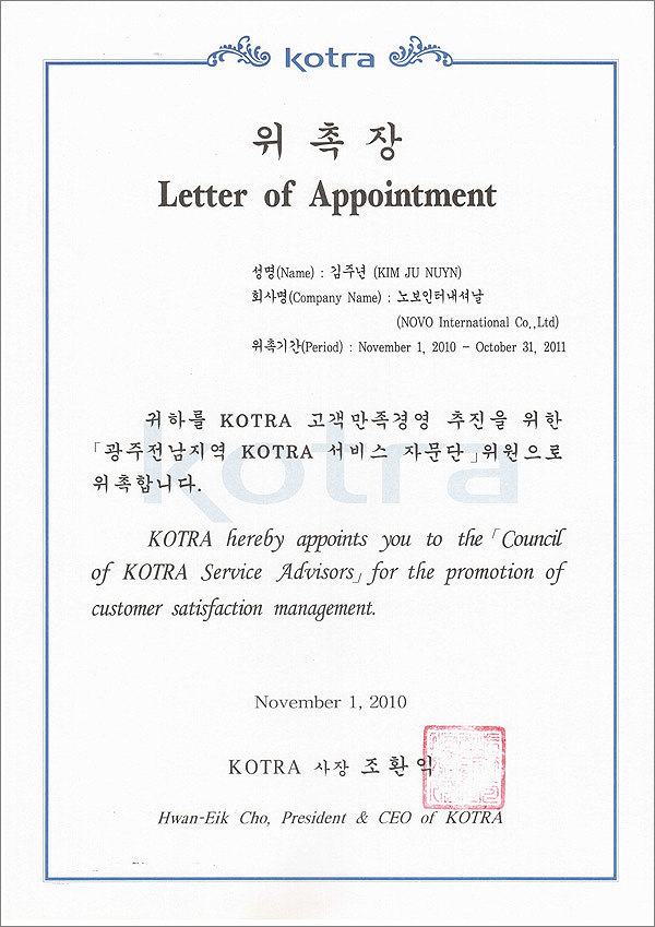 Поручение обязанностей консультанта KOTRA |